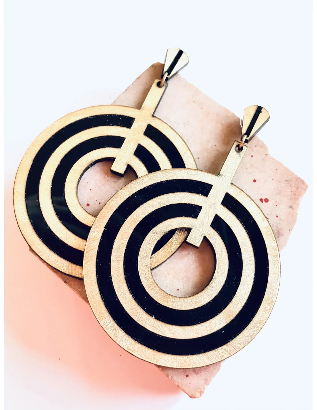 Δεν υπάρχουν άλλα προϊόντα στο καλάθι σαςΚόσμημα σκουλαρίκια από plexi glass με σχέδιο με τρεις ομόκεντρους κύκλους σε χρυσό και μαύρο και κούμπωμα καρφί Round
