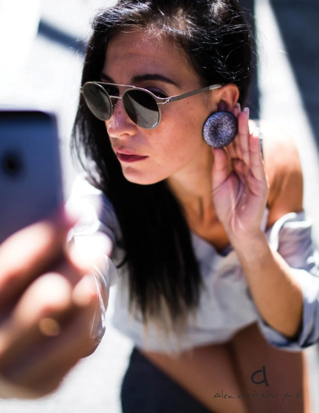 Τα σκουλαρίκια Button συνδυάζουν τη μινιμαλιστική αισθητική με μία πινελιά λάμψης. Το κυκλικό τους σχήμα και η ανάγλυφη επιφάνεια με glitter σε αποχρώσεις του γκρι και του μαύρου τα καθιστούν ιδανικά για καθημερινές αλλά και βραδινές εμφανίσεις. Με κομψότητα και διακριτικότητα, προσδίδουν μια μοντέρνα αίσθηση στο στυλ σας.