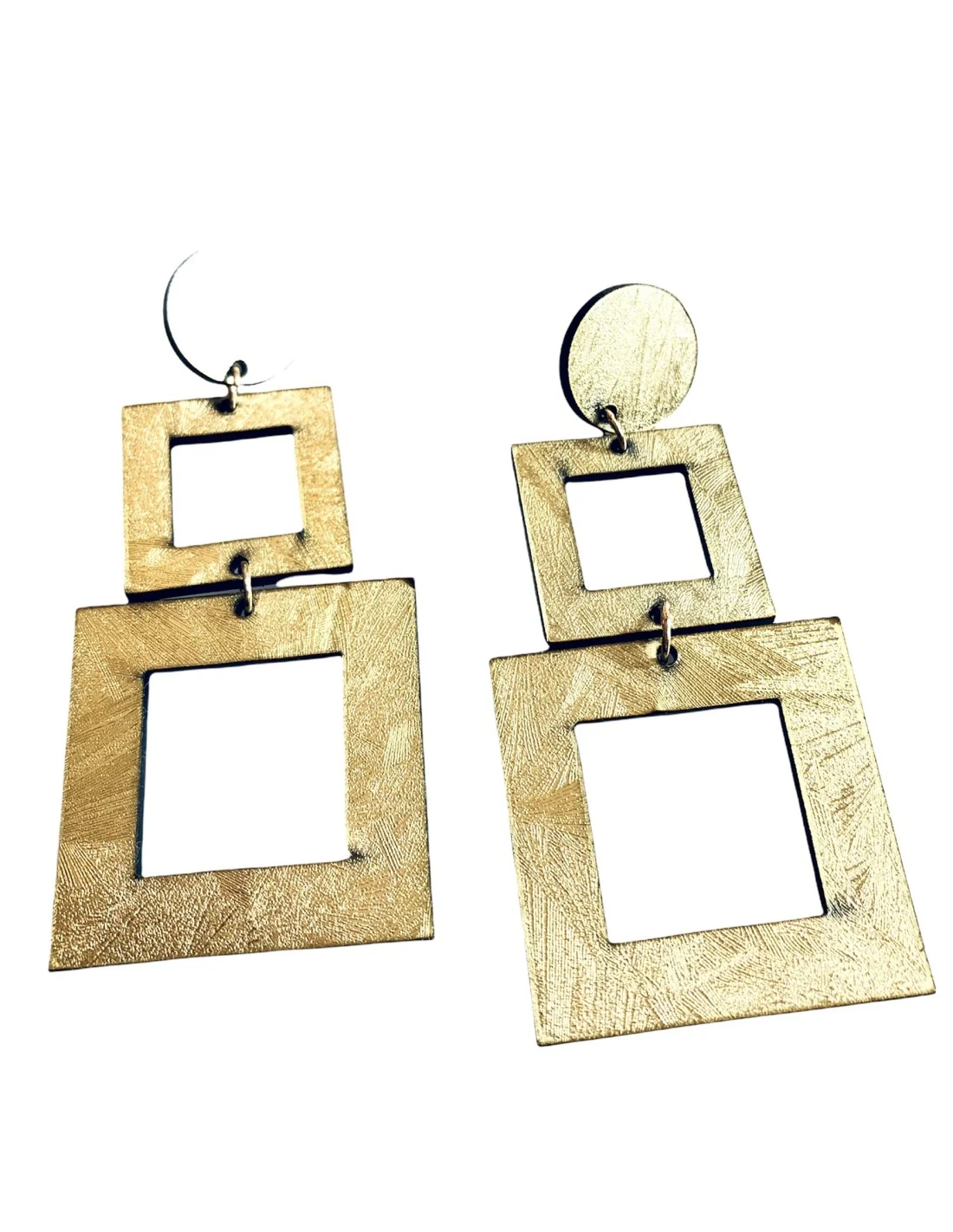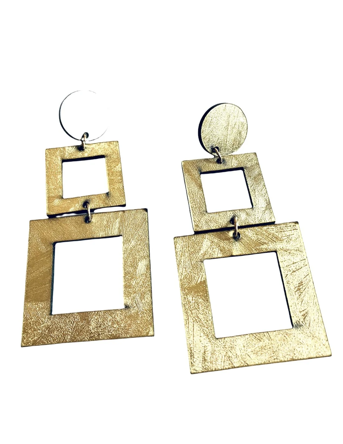 Τα σκουλαρίκια Squared αποτελούνται από μοντέρνα άνισα τετράγωνα στοιχεία σε χρυσό χρώμα, δημιουργώντας ένα εντυπωσιακό και σύγχρονο design. Το μοναδικό τους στυλ τα καθιστά ιδανικά για γυναίκες που λατρεύουν τα γεωμετρικά σχέδια και τις λιτές γραμμές. Ελαφριά και ευκολοφόρετα, είναι τέλεια για κάθε περίσταση, από πρωινές εμφανίσεις μέχρι βραδινές εξόδους.
