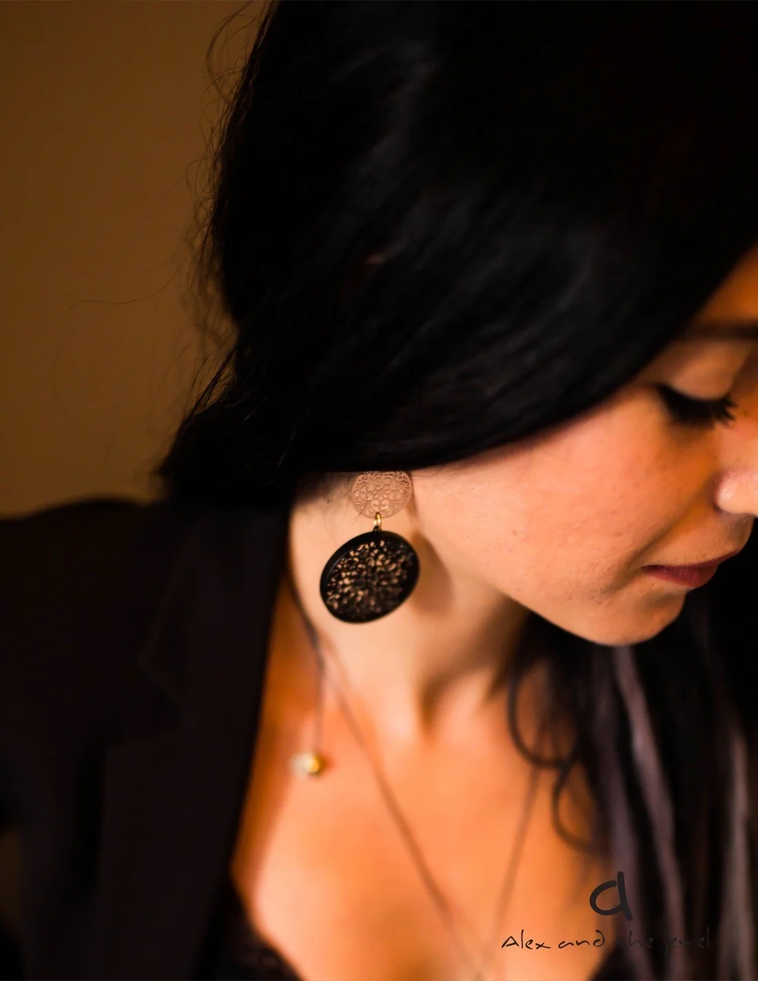 - Κολιέ με μικρά κρύσταλλα σε χρυσό ή μαύρο για να ενισχύσετε την αντίθεση.