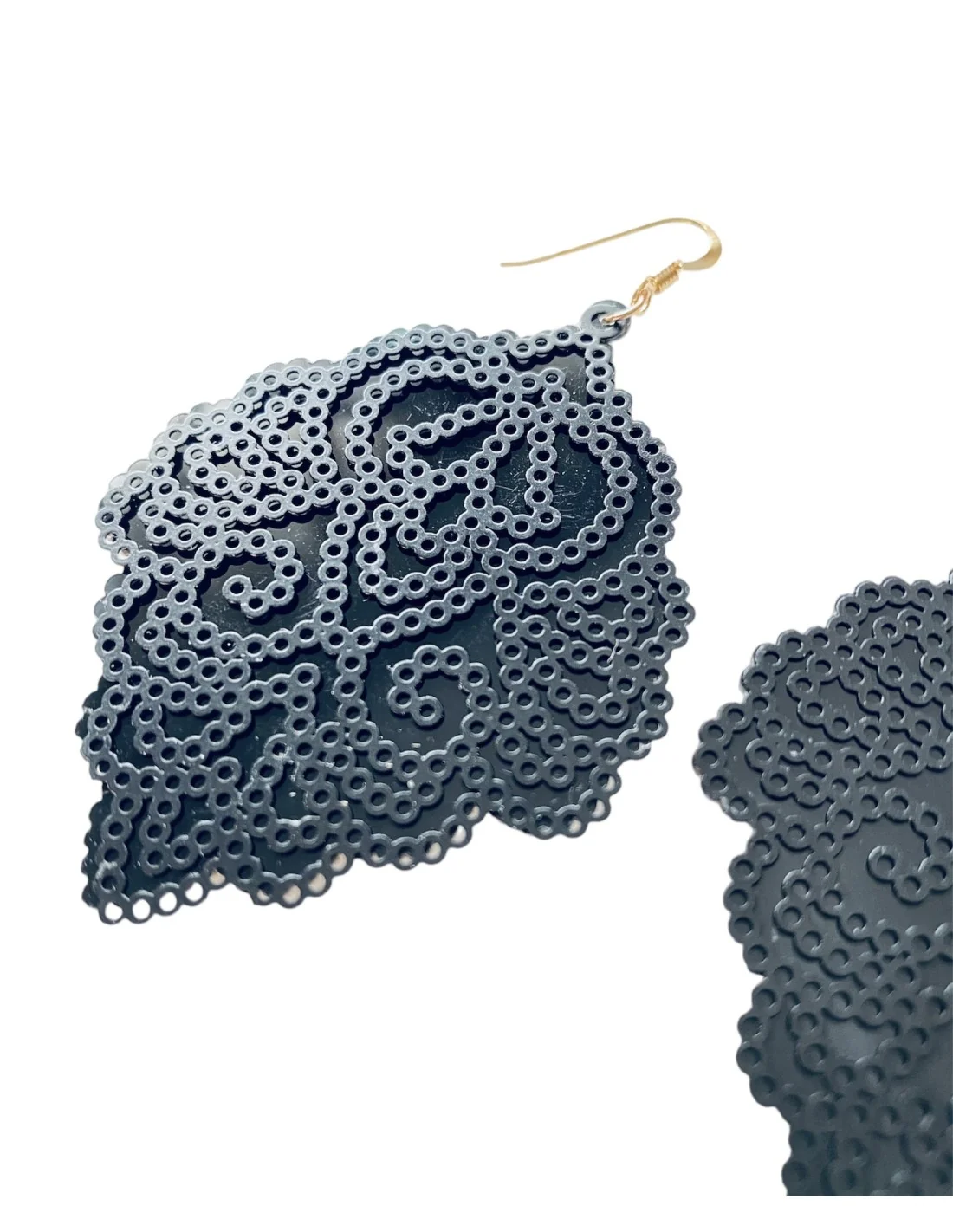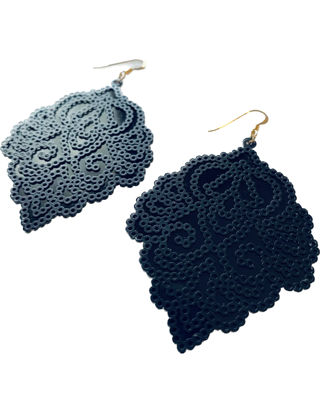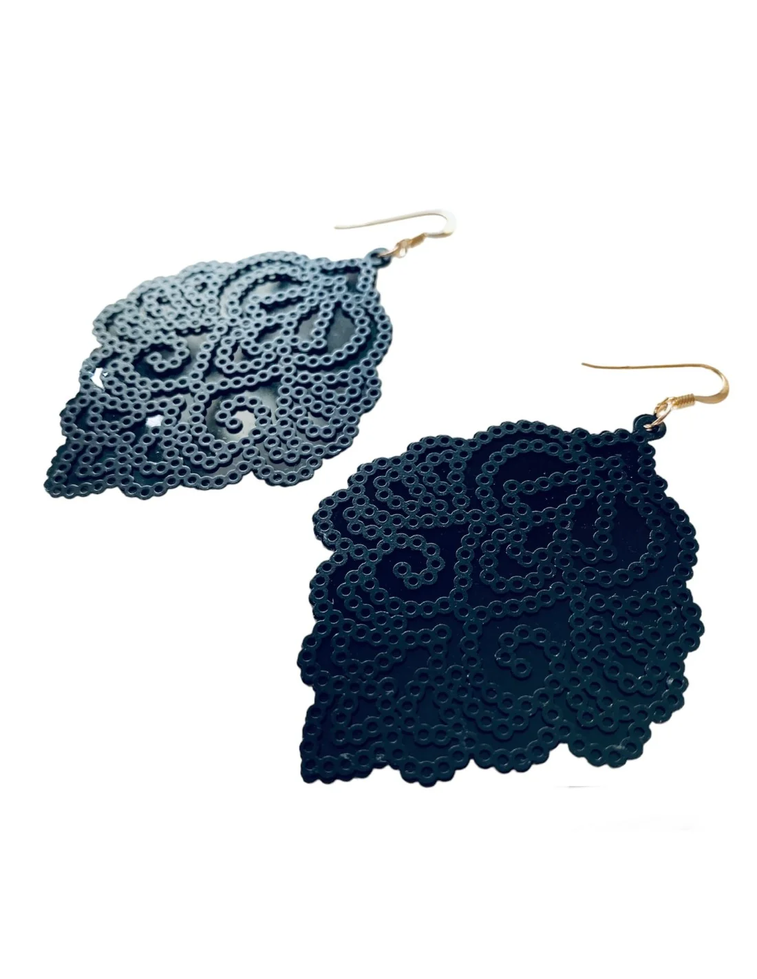 Χειροποίητα Σκουλαρίκια "Kentima" σε Μαύρο Διάτρητο Σχέδιο