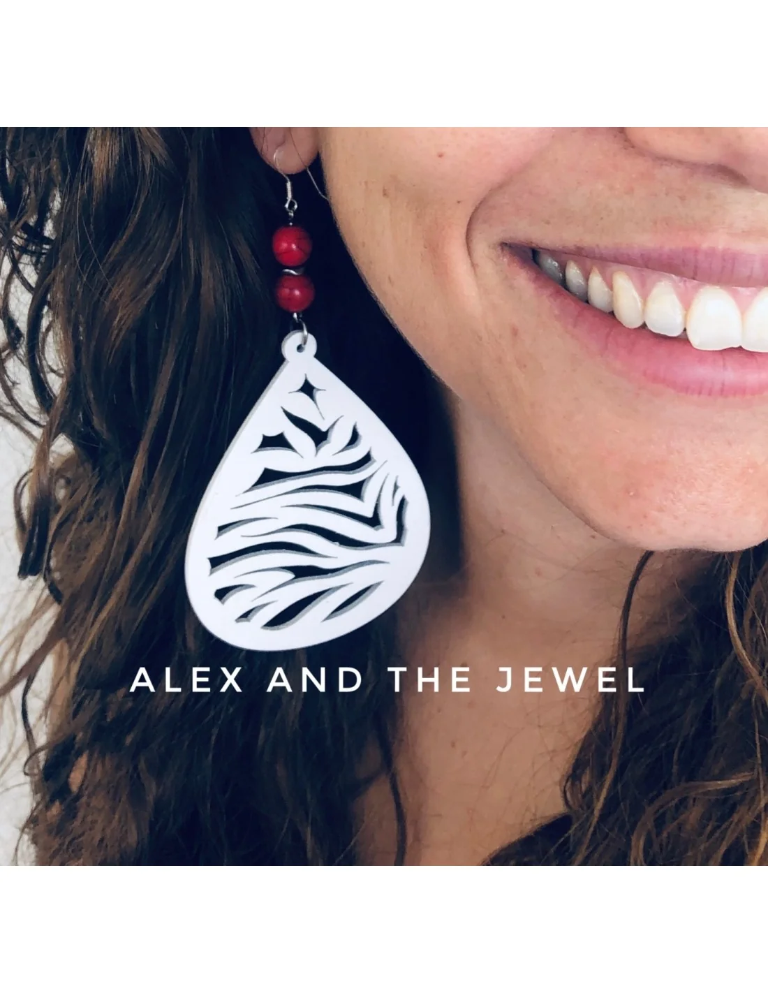 Δεν υπάρχουν άλλα προϊόντα στο καλάθι σαςΚόσμημα σκουλαρίκια από ξύλινο λευκό στοιχείο με πέτρες αιματίτη με πέτρες τιρκουάζ Χαολίτη ή κόκκινο κοράλι Summer Madness
