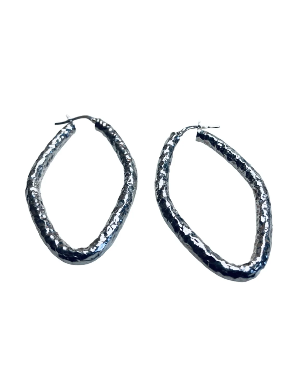 Αναδείξτε τη μοντέρνα κομψότητά σας με τα σκουλαρίκια Silion, σε τριγωνικό σχήμα κρίκου από σφυρήλατο ασήμι 925. Αυτά τα σκουλαρίκια διαθέτουν κούμπωμα καρφί, που εξασφαλίζει άνεση και ασφάλεια, ενώ το μοναδικό τους σχήμα και η σφυρήλατη υφή προσδίδουν μια ιδιαίτερη, χειροποίητη αισθητική. Ιδανικά για γυναίκες που αγαπούν τα ξεχωριστά κοσμήματα και θέλουν να προσθέσουν μια μοντέρνα πινελιά στις εμφανίσεις τους.