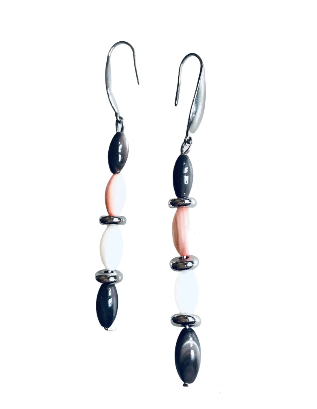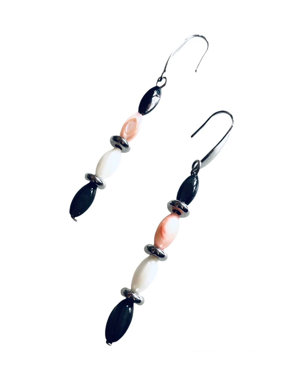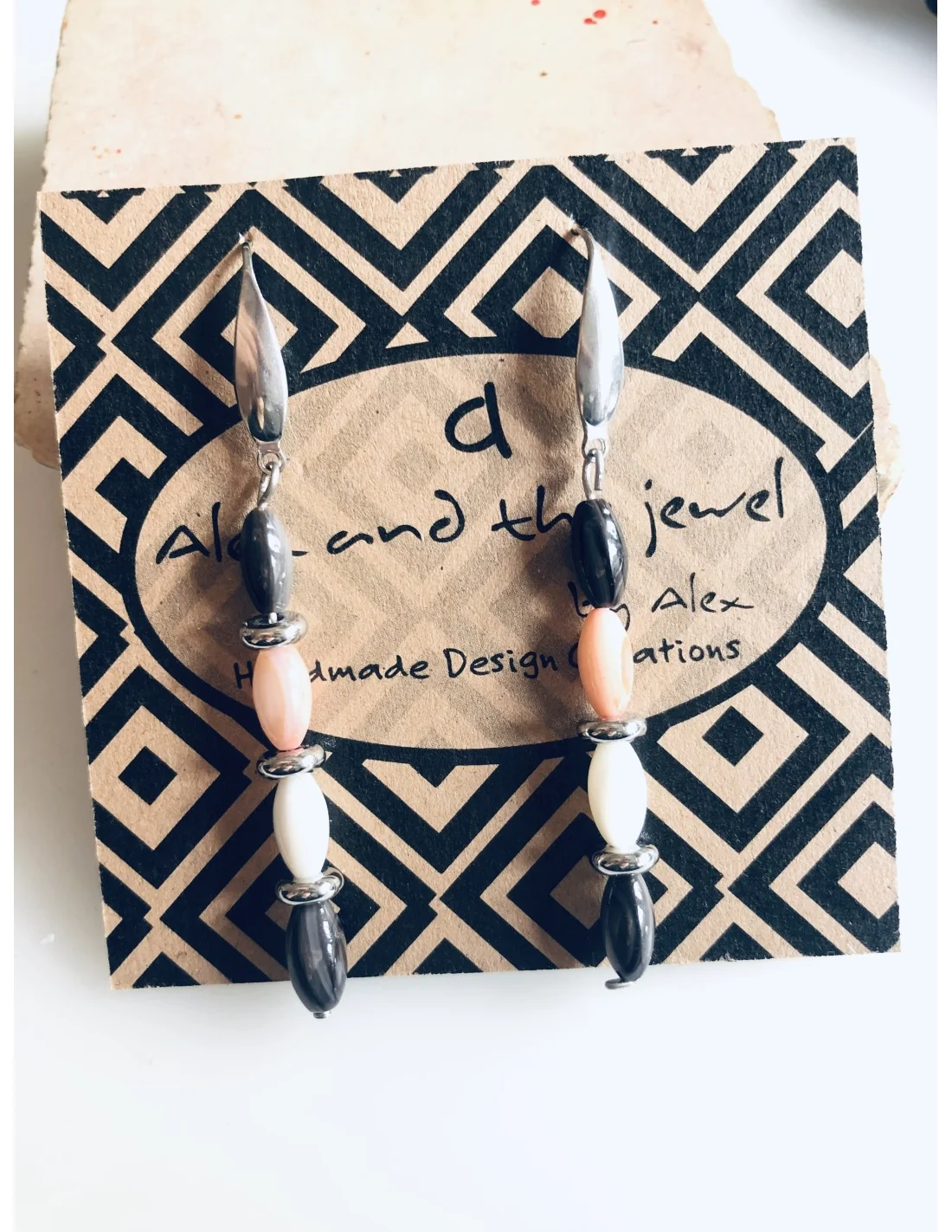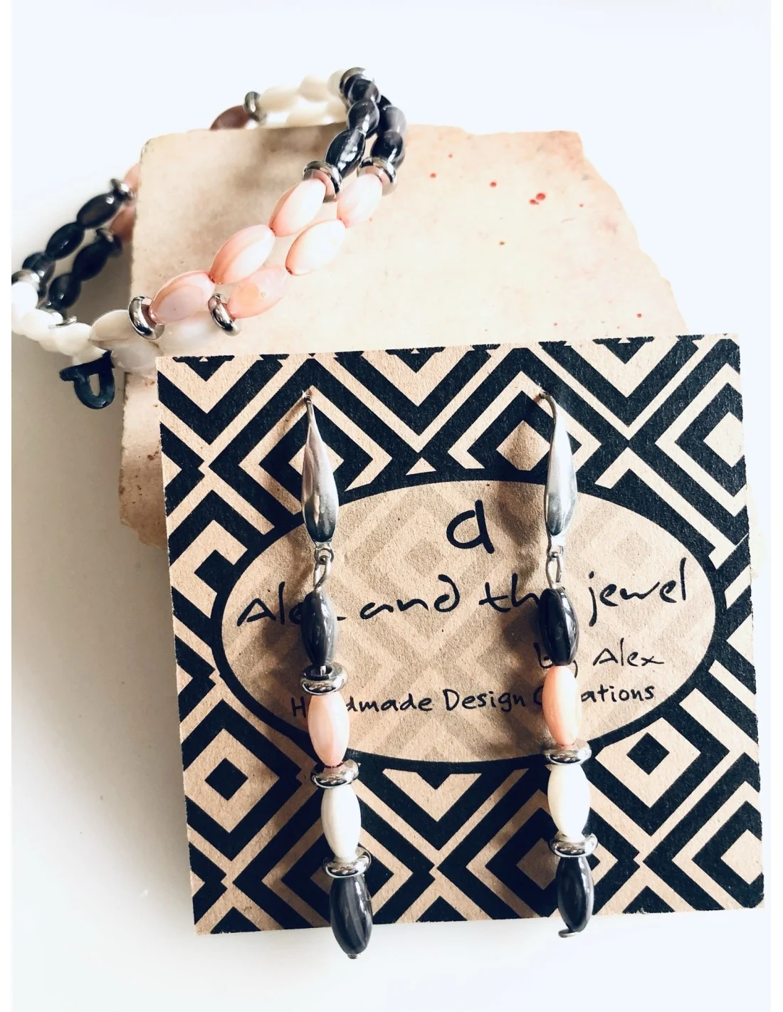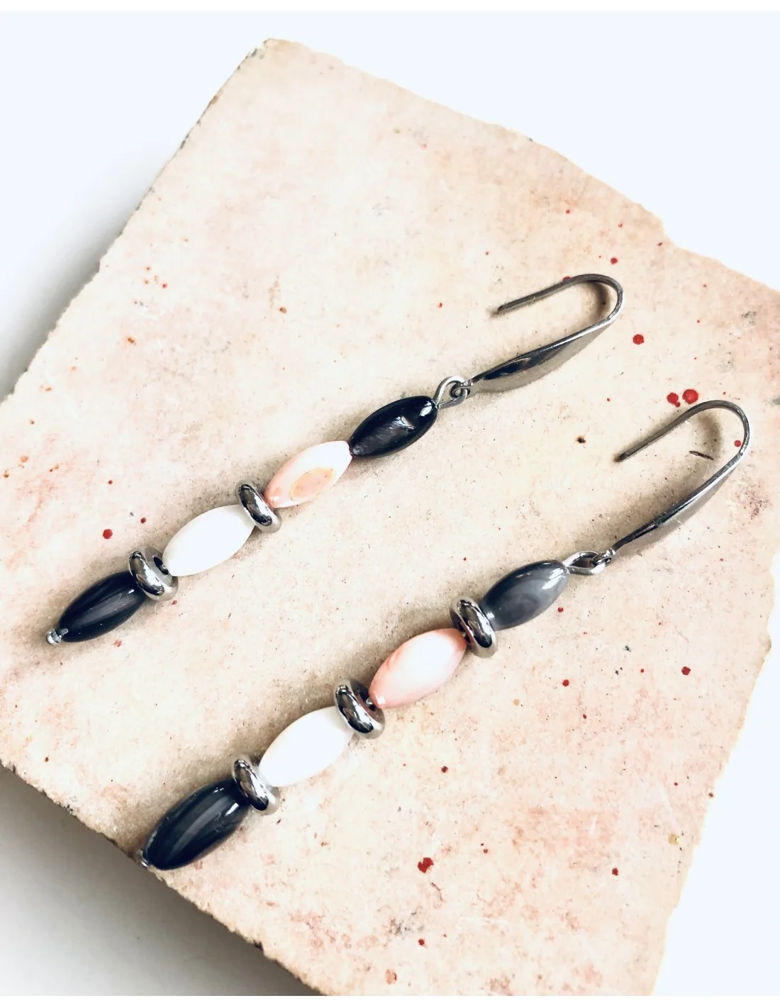 Αναδείξτε την κομψότητά σας με αυτά τα χειροποίητα σκουλαρίκια από φίλντισί σε τρεις εκλεπτυσμένες αποχρώσεις και πέτρα αιματίτη που προσδίδουν μια διαχρονική γοητεία. Ο ιδιαίτερος γάντζος από αντιαλλεργικό ανοξείδωτο ατσάλι προσφέρει άνεση και αντοχή, κάνοντας αυτά τα σκουλαρίκια ιδανική επιλογή για γυναίκες με ευαίσθητο δέρμα.