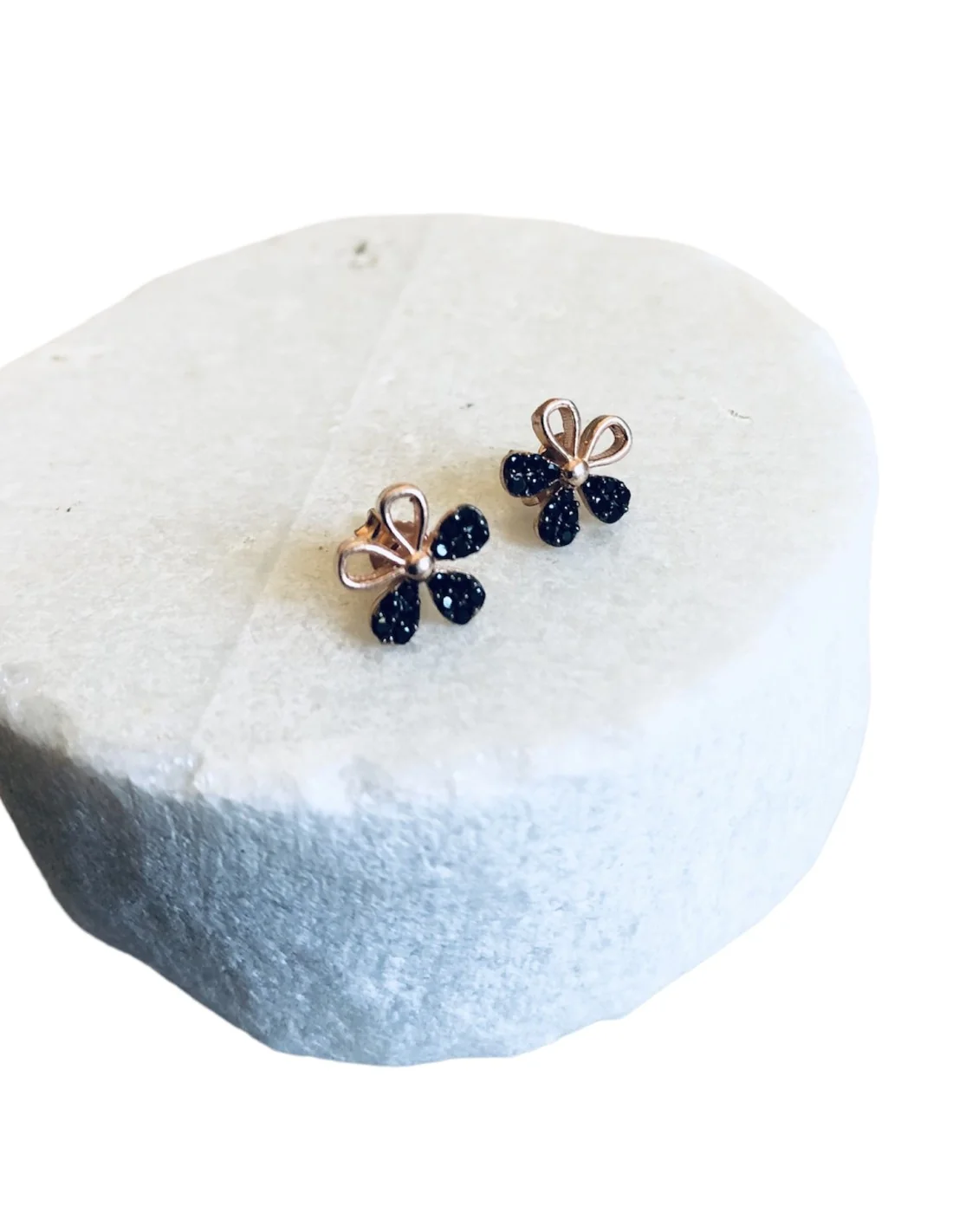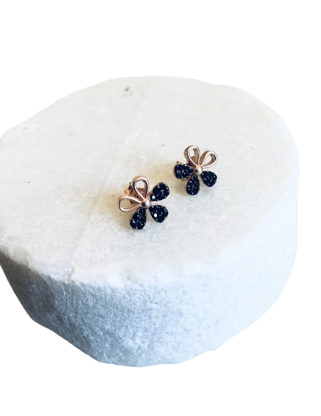 Γυναικεία Σκουλαρίκια από Ασήμι 925 σε Σχήμα Λουλούδι με Διάτρητα Πέταλα και Μαύρα Ζιργκόν
