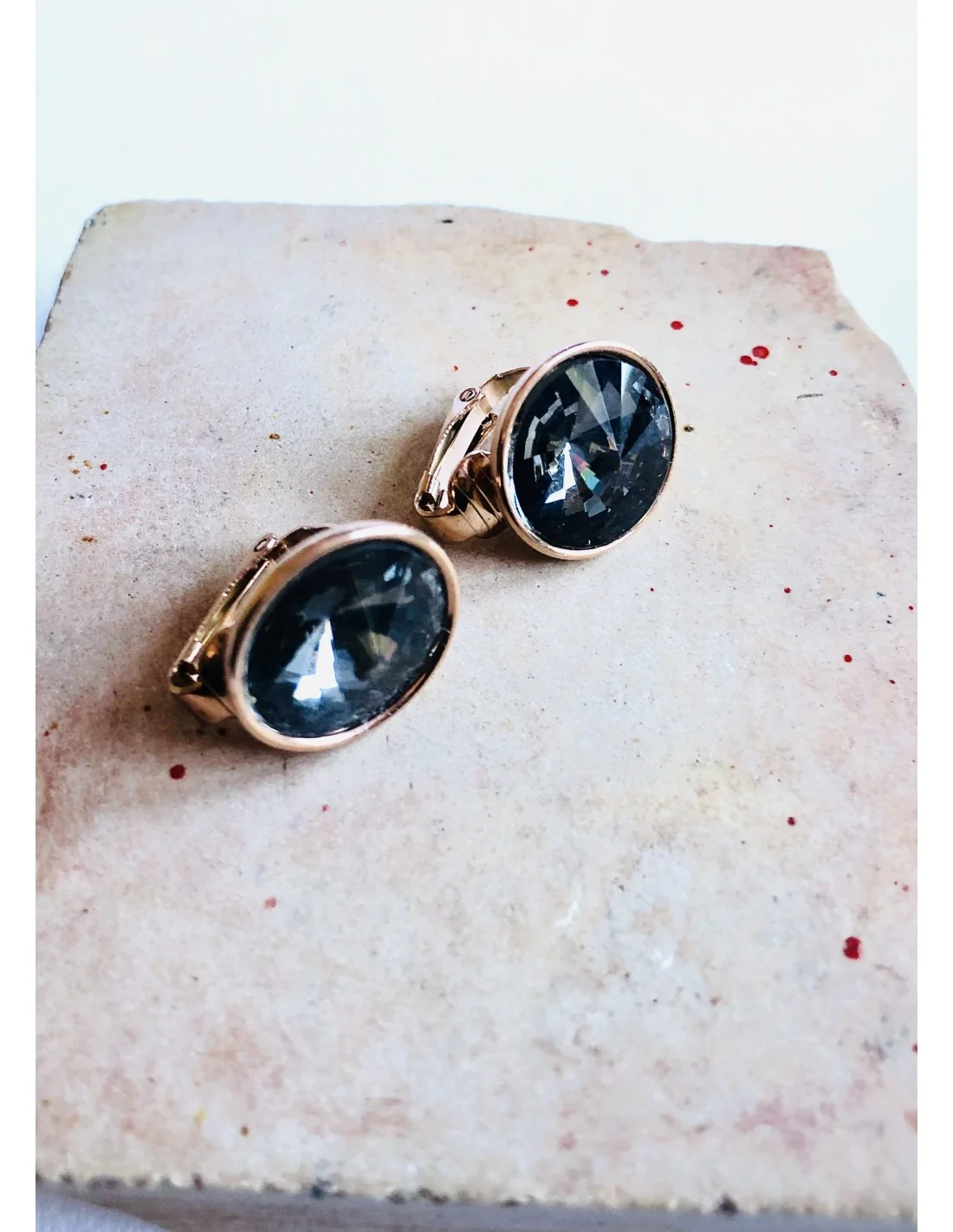 Αναδείξτε το στυλ σας με αυτά τα κομψά, στρογγυλά σκουλαρίκια από ατσάλι σε ροζ χρυσό. Διαθέτουν ένα μεγάλο γκρι κρύσταλλο Τσεχίας στο κέντρο που προσθέτει λάμψη και κομψότητα. Με κούμπωμα κλιπ, είναι άνετα και ιδανικά για καθημερινές ή επίσημες εμφανίσεις.