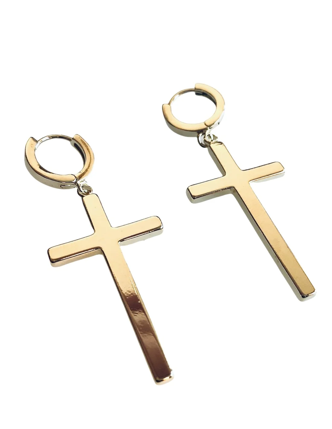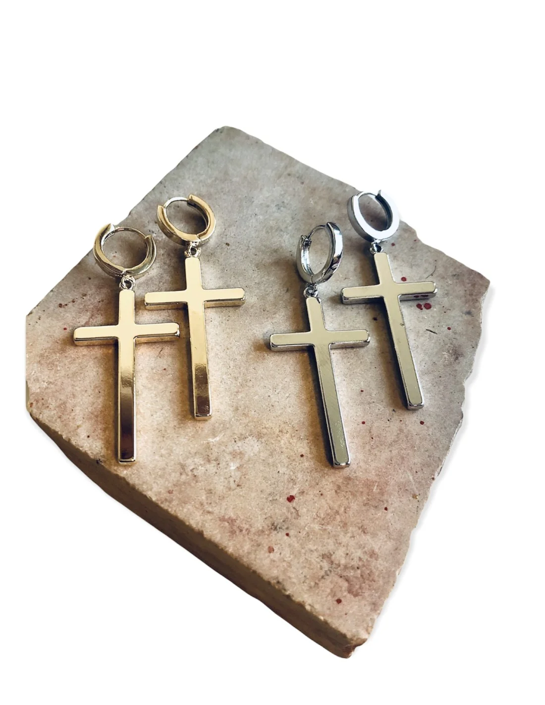 Αυτά τα χειροποίητα σκουλαρίκια από ατσάλι σε σχέδιο σταυρού προσφέρουν μία μοντέρνα και κομψή πινελιά σε κάθε εμφάνιση. Διαθέσιμα σε δύο εκδοχές, ασήμι ή χρυσό, με κούμπωμα κρικάκι, είναι η τέλεια επιλογή για να δώσετε στυλ και χαρακτήρα σε κάθε σας look.