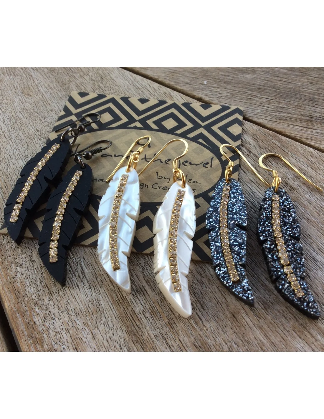 Κόσμημα σκουλαρίκια φύλλο με swarovski elements σε 3 αποχρώσεις και γάντζους από ασήμι 925 Alina
