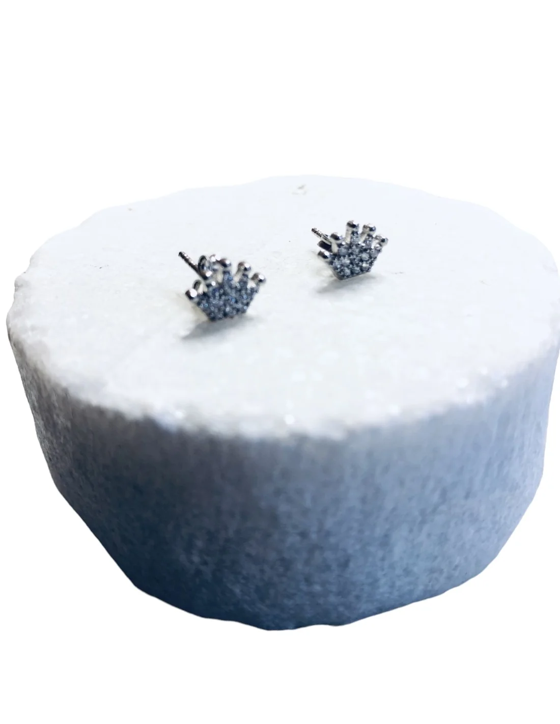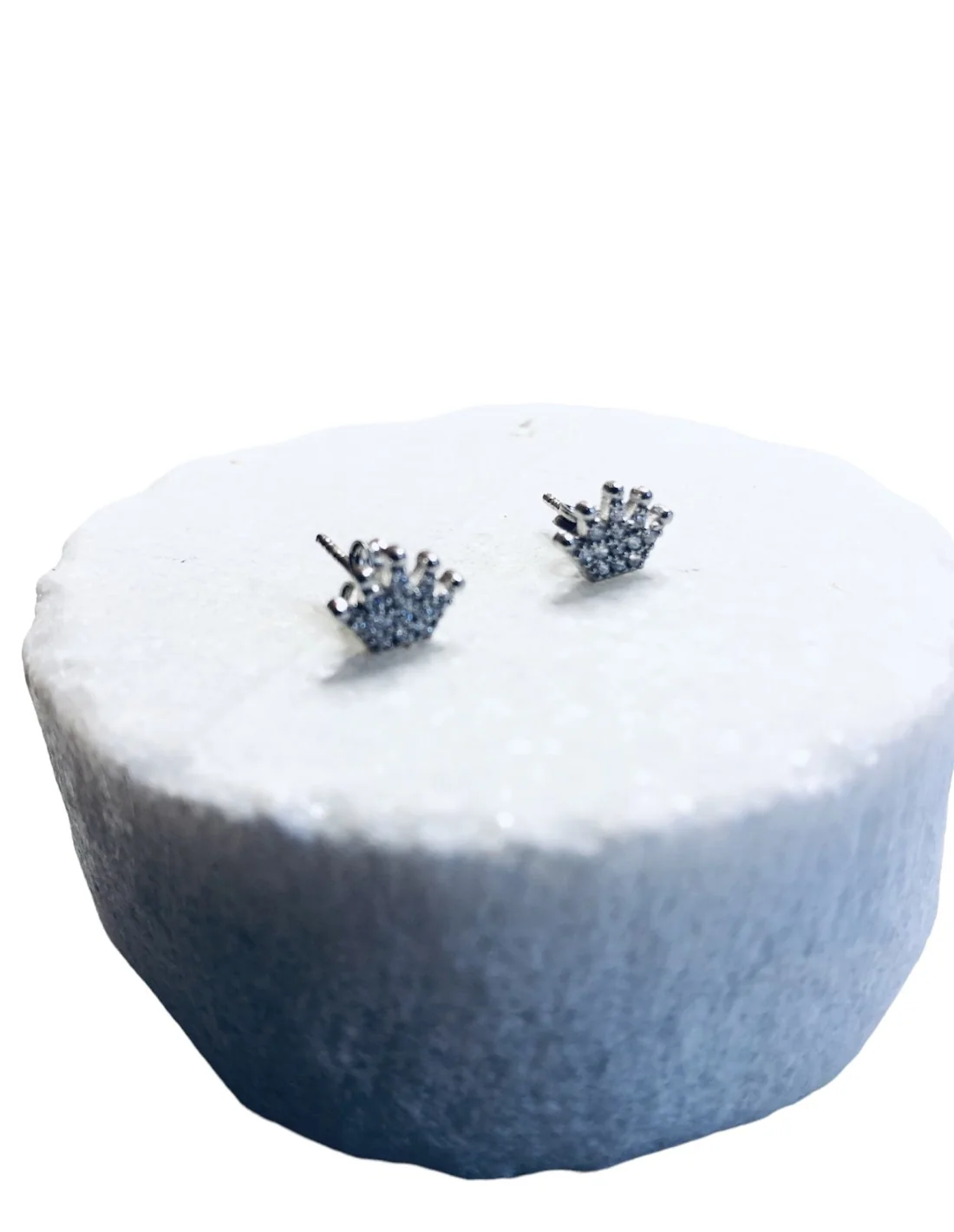 Γυναικεία Σκουλαρίκια The Crown από Ασήμι 925 με Ζιργκόν σε Σχέδιο Κορώνας και Κούμπωμα Καρφί