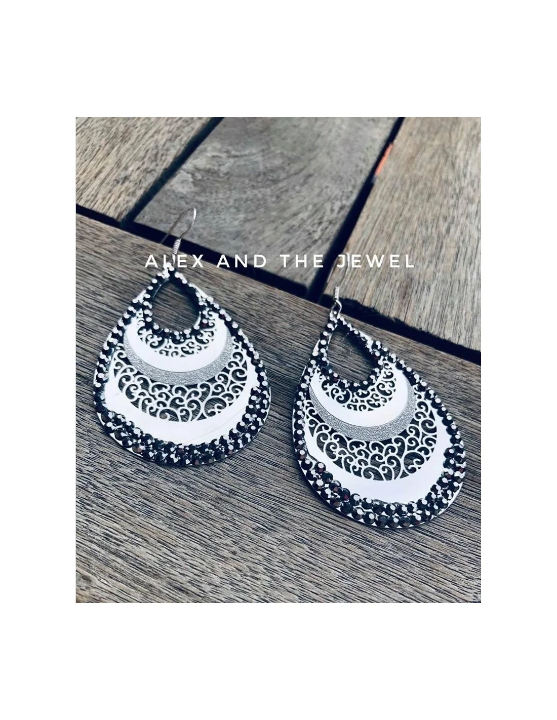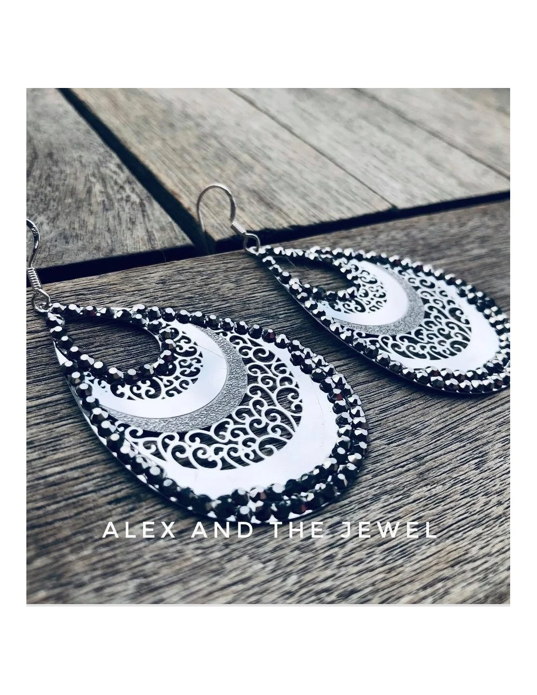Κόσμημα Σκουλαρίκια με Ατσάλινο Στοιχείο Φιλιγκρί και Pavé Κρύσταλλα σε Σχήμα Σταγόνας – Isidora