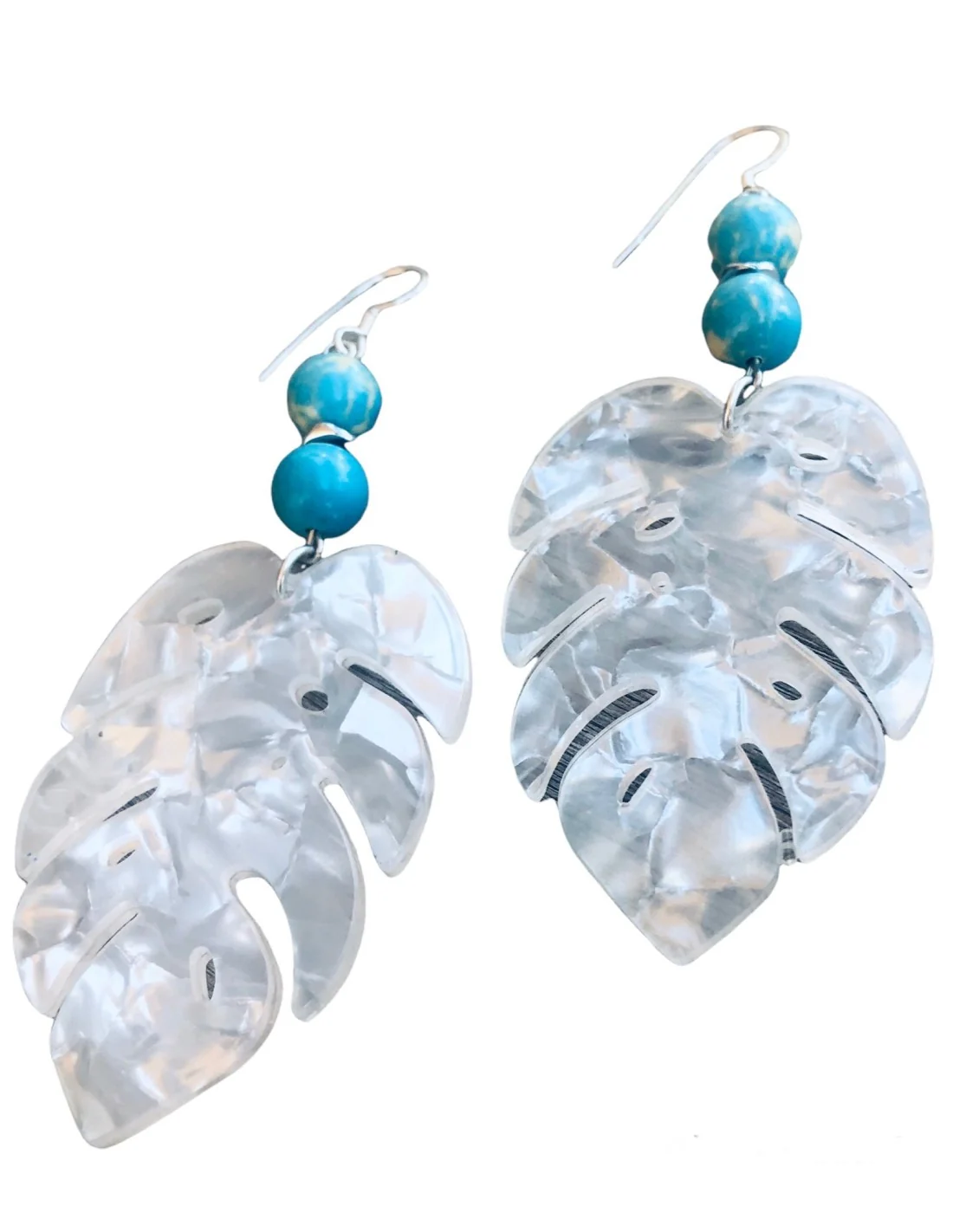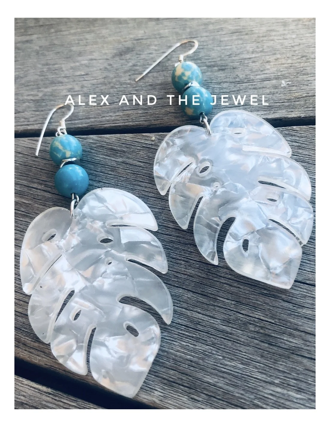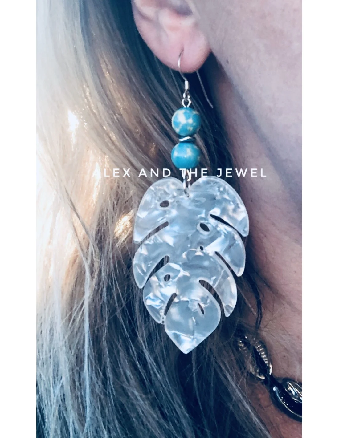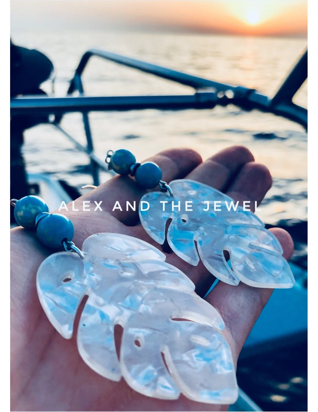 Τα σκουλαρίκια Paros είναι μια κομψή και διαχρονική επιλογή, ιδανική για όσες αγαπούν τα φυσικά υλικά και τις minimal γραμμές. Το κρεμαστό στοιχείο φύλλο σε λευκό του πάγου με εντυπωσιακά νερά, συνδυάζεται αρμονικά με πέτρες Χαολίτη και αιματίτη. Οι γάντζοι από ασήμι 925 προσφέρουν ασφάλεια και κομψότητα.