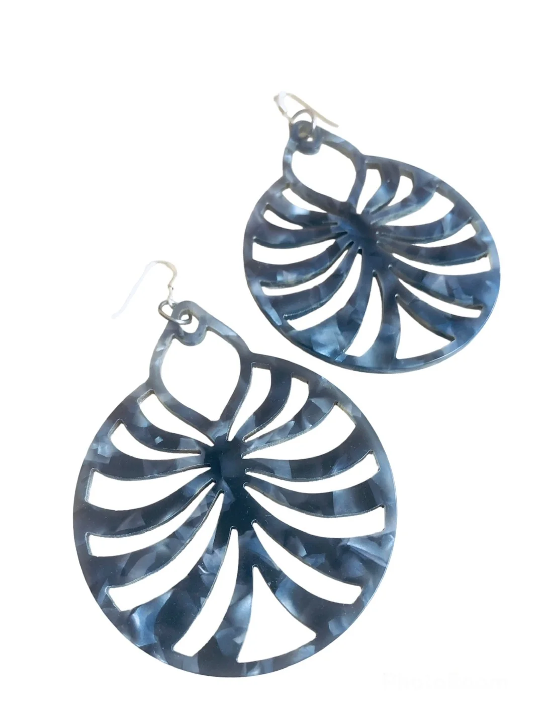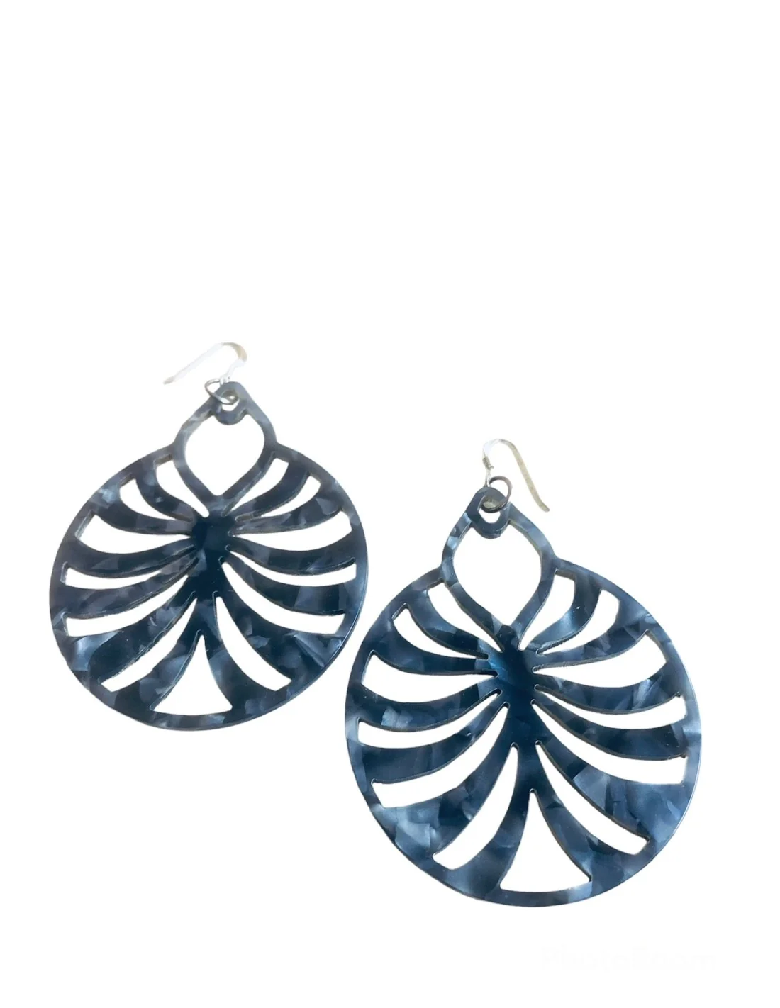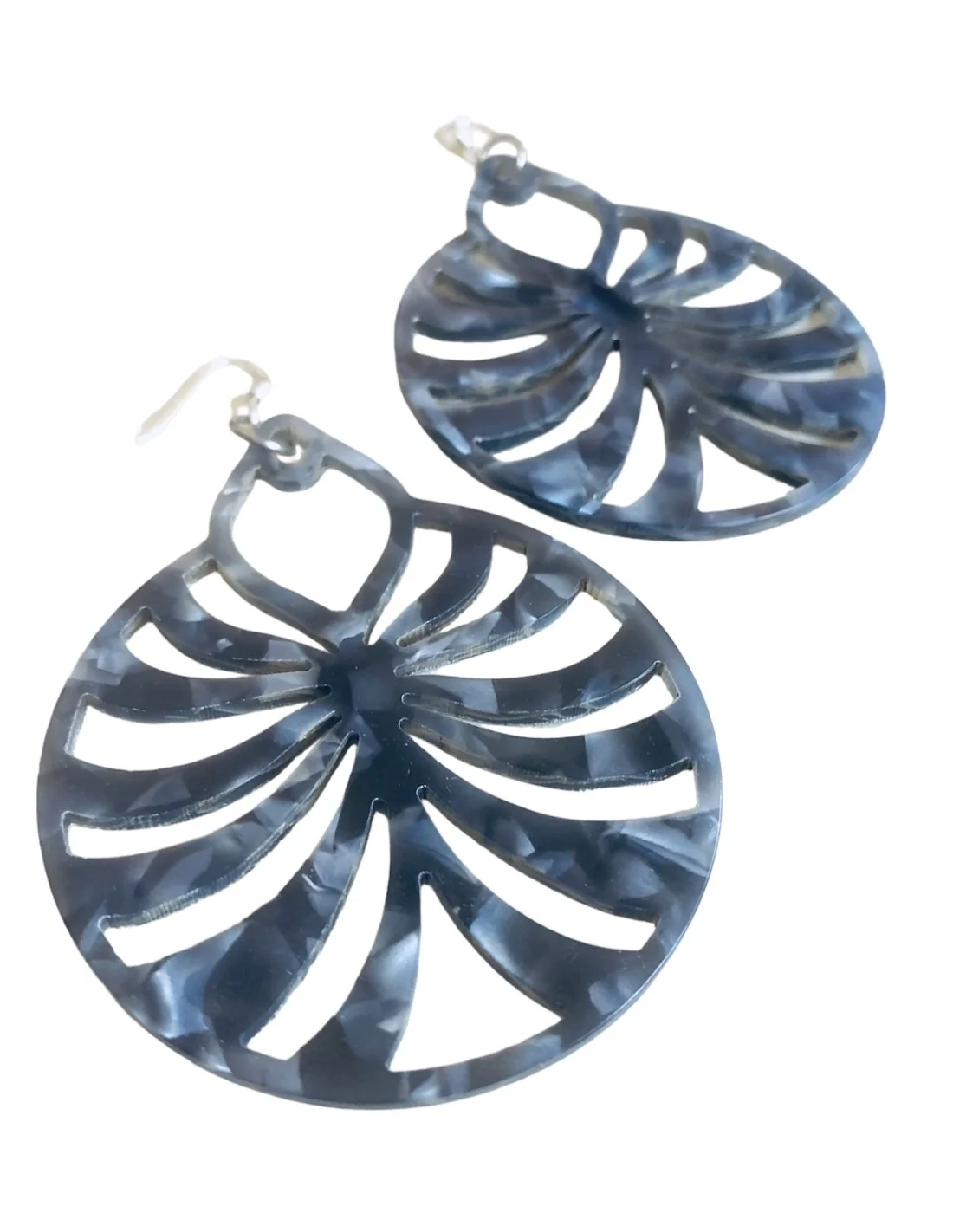 Χειροποίητα Statement Σκουλαρίκια από Plexiglass με Διάτρητο Σχέδιο σε Γκρι