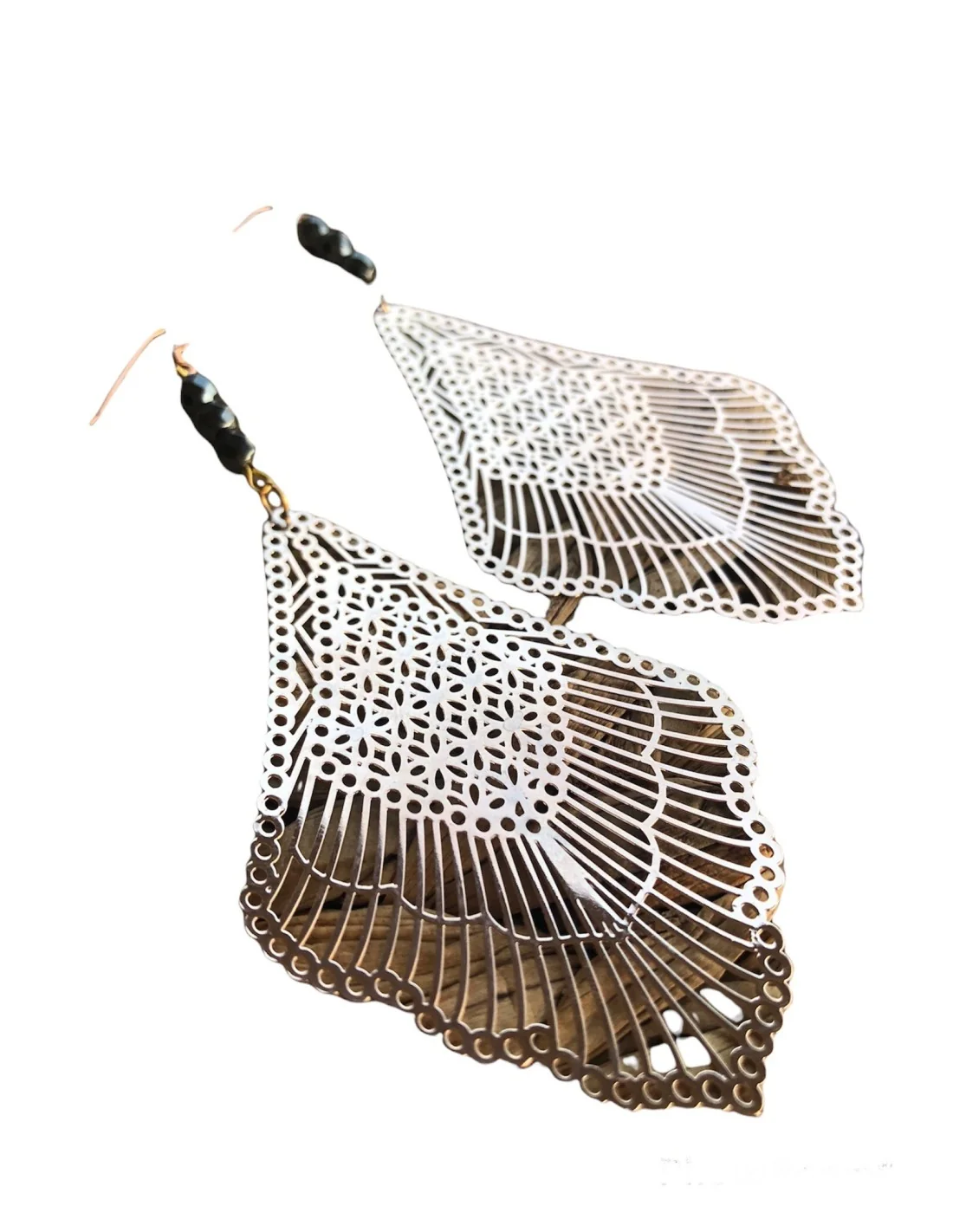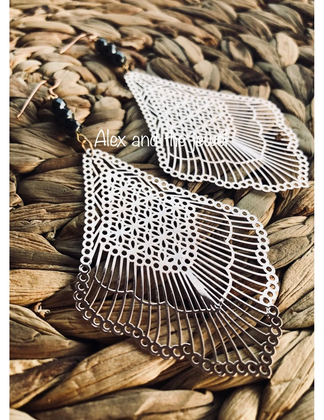 Σκουλαρίκια Φιλιγκρί με Ημιπολύτιμες Πέτρες Αιματίτη – Silia