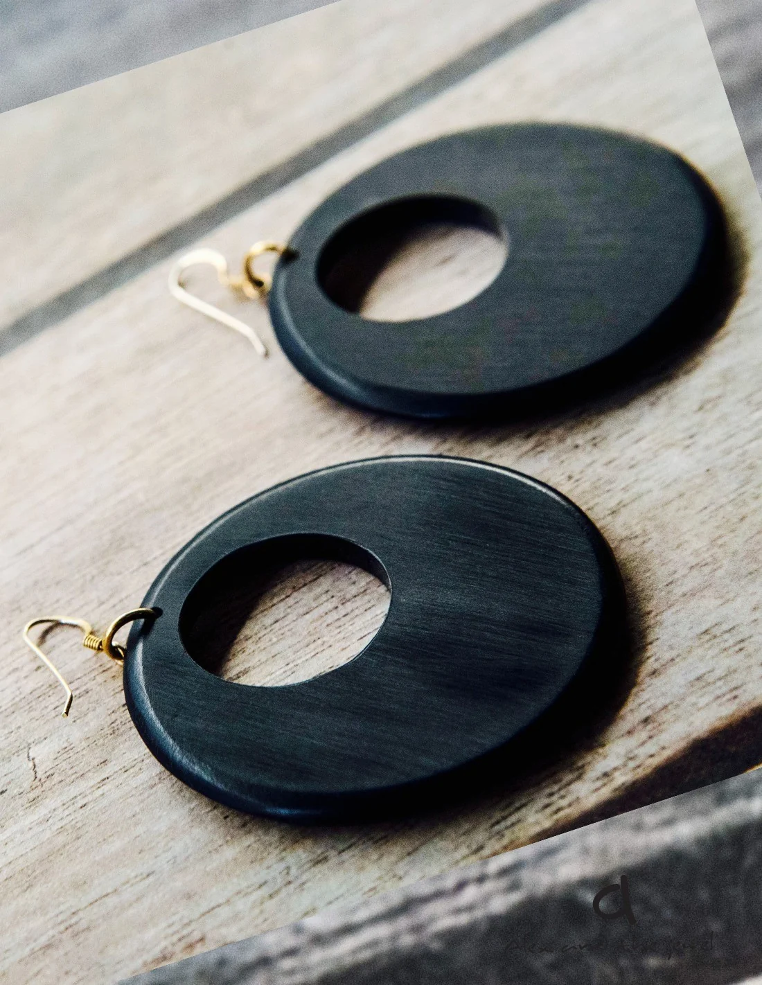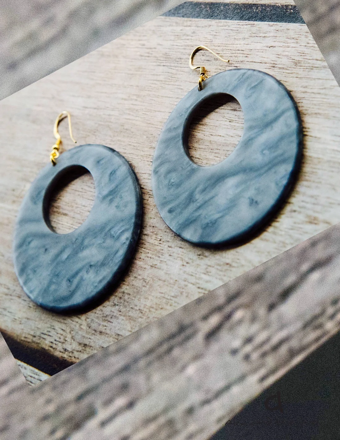 Αυτά τα σκουλαρίκια συνδυάζουν μοντέρνα γεωμετρία με φυσική κομψότητα. Η πλακέ μορφή τους σε γκρι ή μαύρο χρώμα τα καθιστά ιδανικά για κάθε περίσταση, από την καθημερινότητα έως το βράδυ. Οι γάντζοι από ασήμι 925 προσφέρουν σταθερότητα και άνεση για όλη τη διάρκεια της ημέρας.