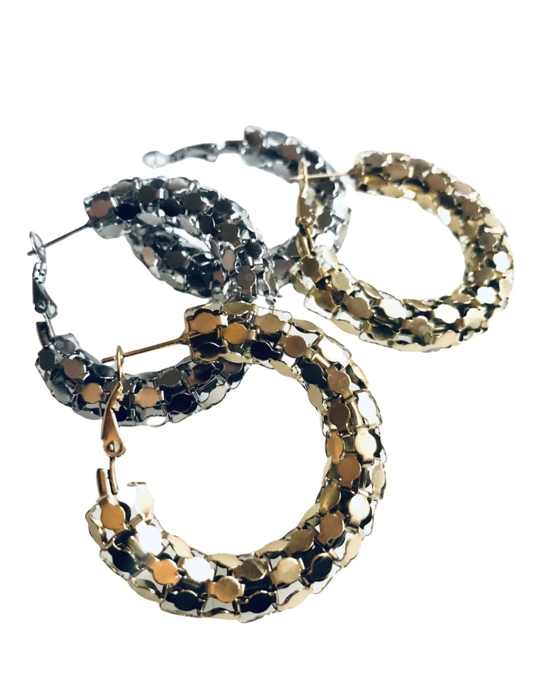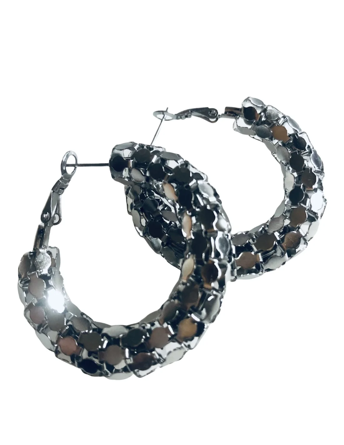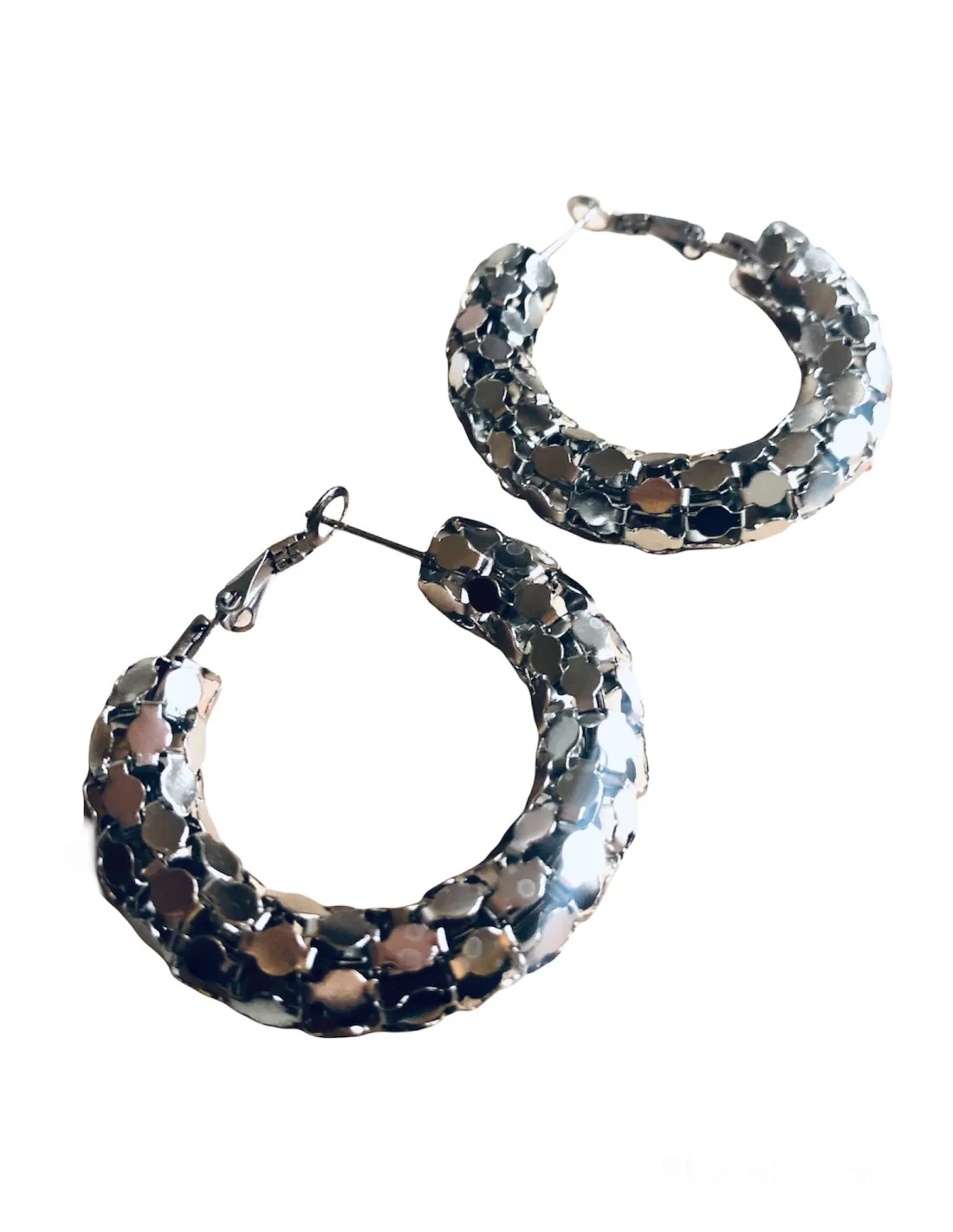 Αναδείξτε το στυλ σας με αυτούς τους εντυπωσιακούς κρίκους μεσαίου μεγέθους σε ασημί ή χρυσή απόχρωση. Κατασκευασμένοι από ανοξείδωτο ατσάλι για μέγιστη αντοχή, διαθέτουν ένα περίτεχνο σχέδιο που τους προσδίδει μοναδικότητα και φινέτσα. Το κούμπωμα καρφί τους εξασφαλίζει σταθερότητα και άνεση στη χρήση, ιδανικό για καθημερινή και βραδινή εμφάνιση.