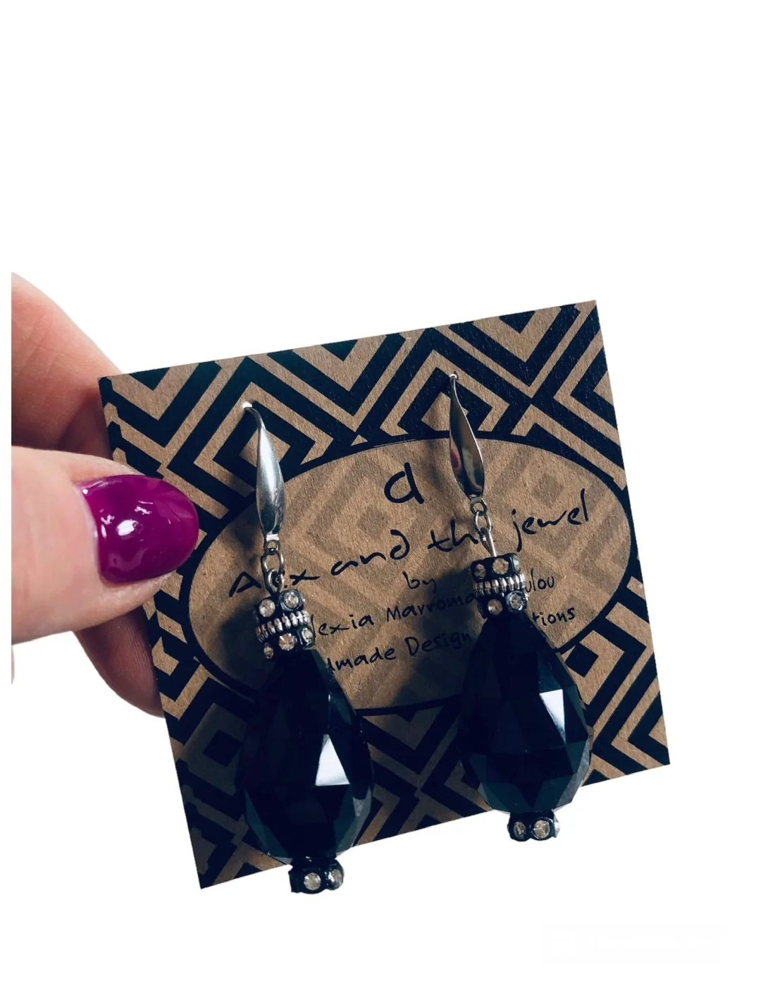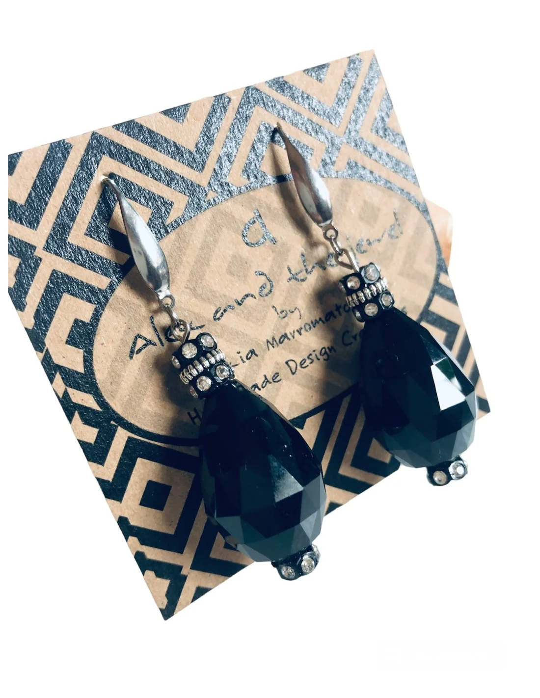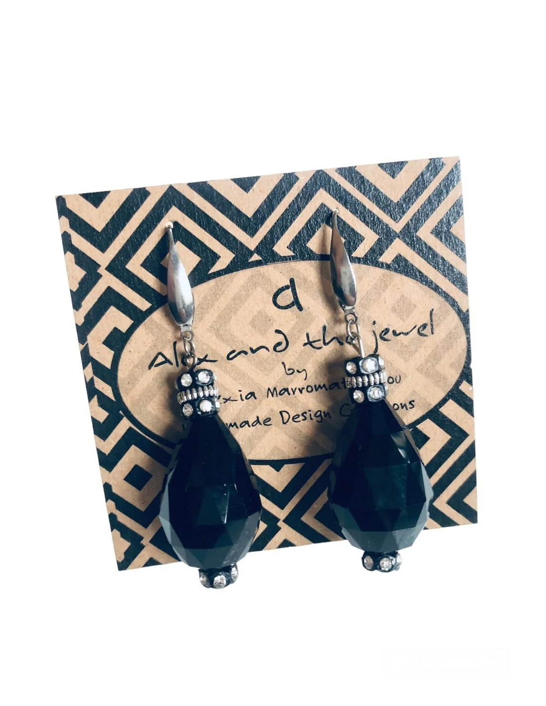 Χειροποίητα Γυναικεία Κρεμαστά Σκουλαρίκια με Μαύρο Κρύσταλλο Τσεχίας