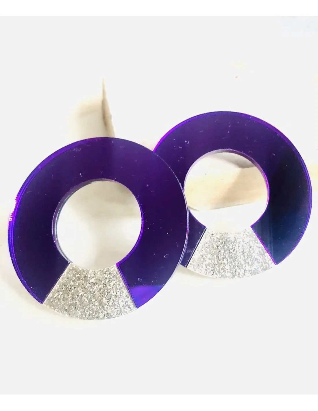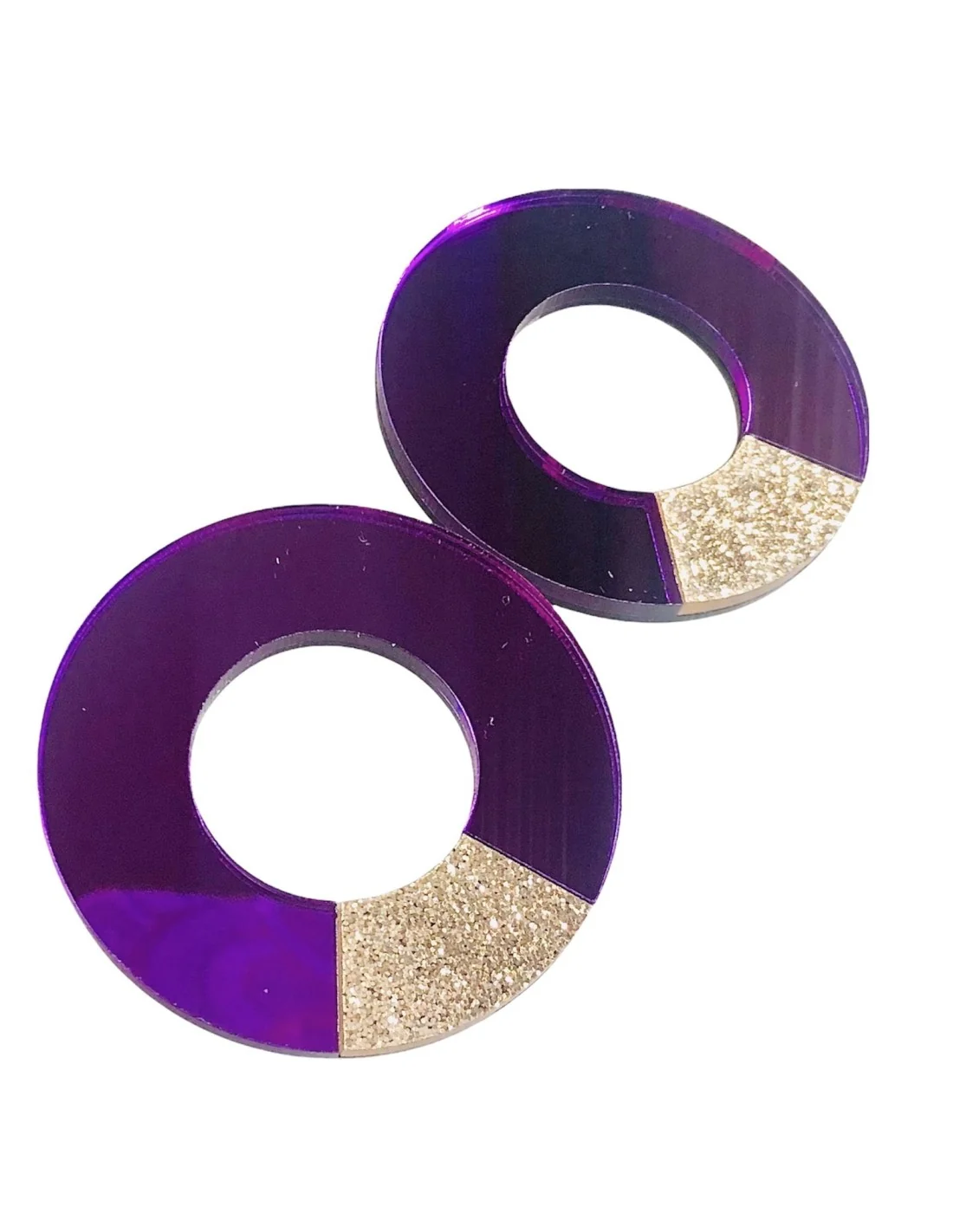 Χειροποίητα Γυναικεία Σκουλαρίκια από Plexiglass σε Σχήμα Κύκλου με Μωβ Αποχρώσεις και Λεπτομέρειες σε Χρυσό Glitter "Monaco"