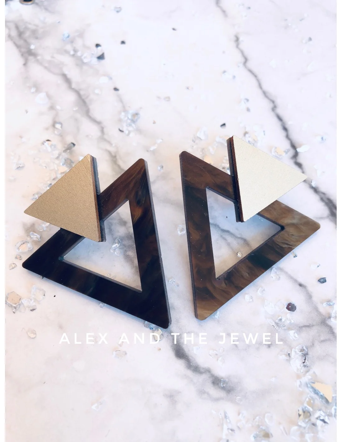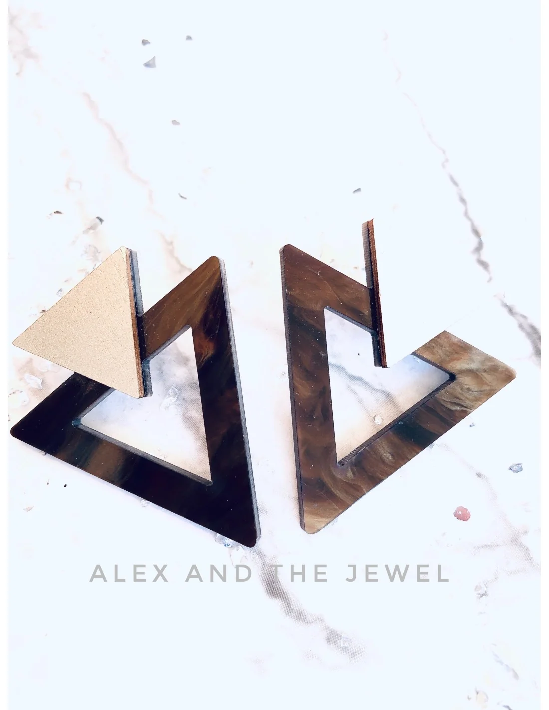 Αυτά τα χειροποίητα σκουλαρίκια σε γεωμετρικό σχήμα συνδυάζουν την μοντέρνα αισθητική του plexiglass με κομψές αποχρώσεις χρυσού και καφέ. Ελαφριά και ευκολοφόρετα, προσθέτουν έναν σύγχρονο χαρακτήρα σε κάθε εμφάνιση. Ιδανικά για γυναίκες που αγαπούν τα μοναδικά αξεσουάρ που ξεχωρίζουν.