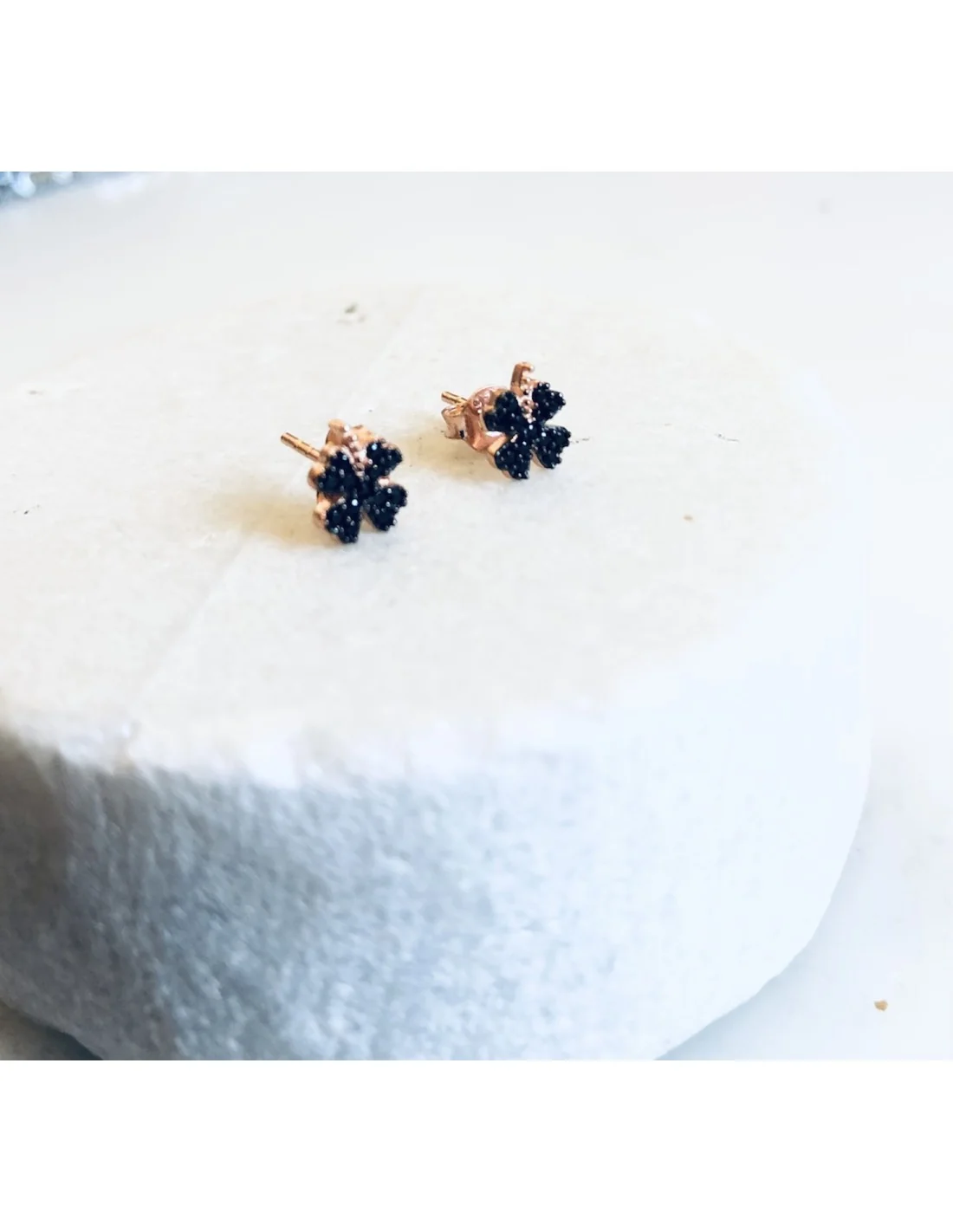 Κόσμημα σκουλαρίκια από ασήμι 925 και μαύρα ζιργκόν σε σχέδιο τετράφυλλο τριφύλλιEliss